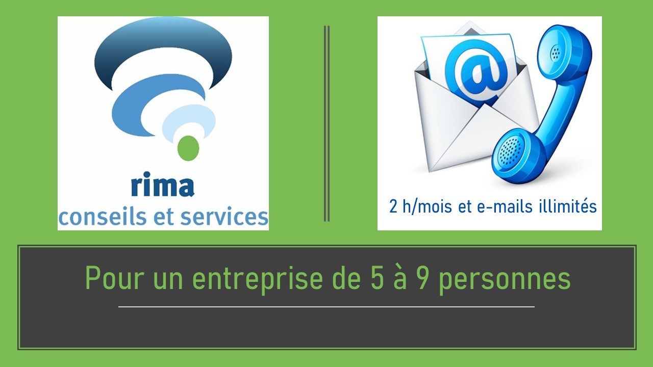 Pour une entreprise de 5 à 9 personnes 2 h de telephone+e-mail illimités RIMA CS
